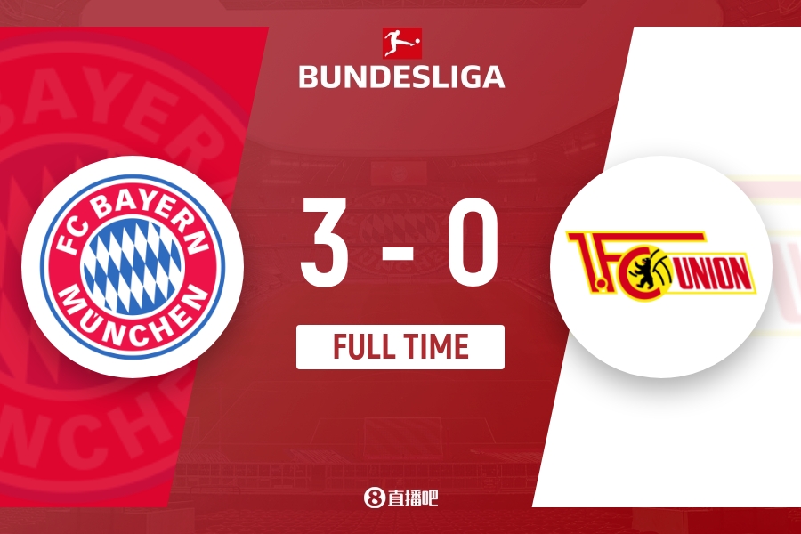 全场比赛结束,拜仁慕尼黑3-0柏林联合。