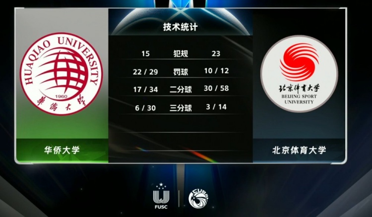 末节开局北京体大虽然外线依旧不准,但陈宇宸命中个人第三记、同时也是球队第三记三分,加上谢智杰的2+1进球,北京体大10-2开局直接拉开两位数分差占据绝对上风。大比分落后的华侨大学尝试抢三分但效果一般,抢分阶段虽然依托叶润峰的三分和李绪建的2+1追至8分但时间所剩不多。北京体大打得很乱但胜在优势大容错率高,最后华侨大学不断抢三分但时间已经不够创造神奇。最终,北京体育大学79-74力克华侨大学拿下比赛。