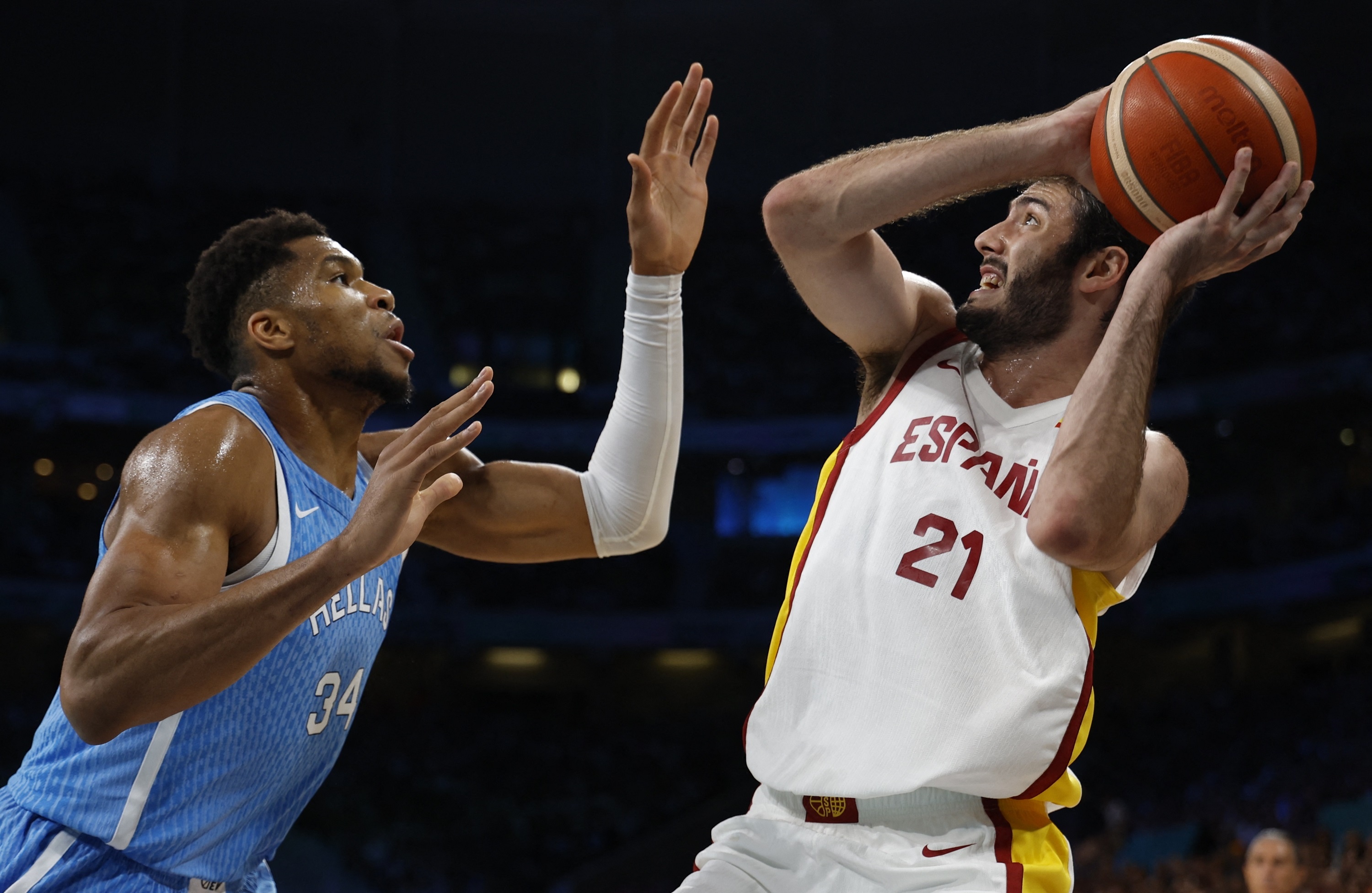 首节之争双方状态相当且外线手感都非常不错,希腊方面字母哥联手卡拉西斯和帕帕扬尼斯,三人合力拿下球队第一节22分里的20分;西班牙这边阿尔马达表现神勇拿下10分紧追比分;次节西班牙外线突然下起三分雨,他们这一节命中7记三分,上半场三分球17投11中的命中率直接打崩希腊,节中送出一波19-5的攻势一举扭转局势并带着14分优势进入下半场。休息归来西班牙男篮状态迅速回落5分钟里仅得6分;希腊抓住机会送出跨节16-6的攻势并一度追平比分;不过最后时刻西班牙及时站出来用一波8-0重新拉开比分奠定胜局,字母哥则错失绝平三分。最终,西班牙力克希腊拿下比赛,后者遭遇2连败。