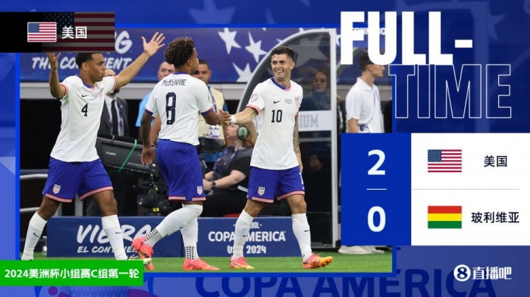 6月24日讯 北京时间6月24日6点,美洲杯小组赛C组第一轮,美国对阵玻利维亚。上半场,普利西奇开场不到3分钟打破僵局,半场结束前他助攻巴洛贡扩大比分。下半场美国依旧多次创造机会但未能再度破门。全场比赛结束,美国2-0玻利维亚。