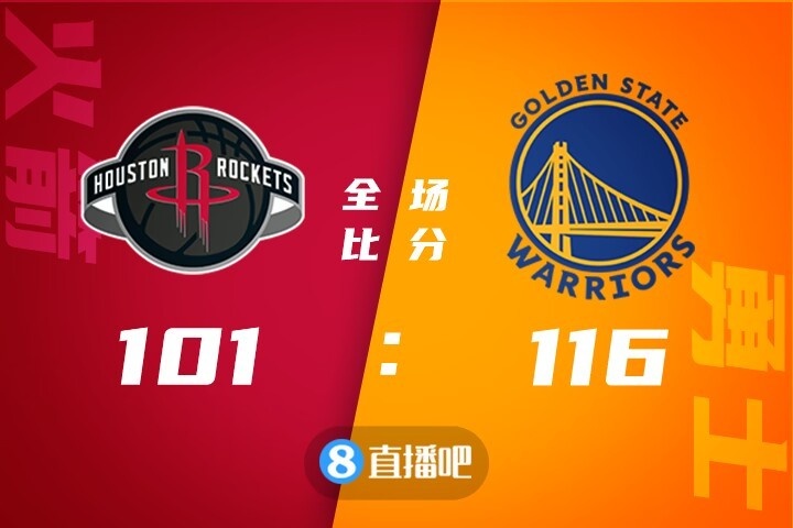 比赛上来,火箭进入状态较快取得场上领先,不过勇士也是紧咬比分并成功追了回来,次节场上局势出现一边倒,火箭的几名球员手感极差,而勇士这边则是彻底打开单节轰下40分,半场结束时火箭已经落后17分之多;下半场回来勇士的命中率急剧下滑,火箭则抓住机会将分差缩小回个位数,但末节克莱根本不给火箭机会,个人连中三分直接杀死比赛悬念,最终勇士116-101轻取火箭,送给后者八连败。
