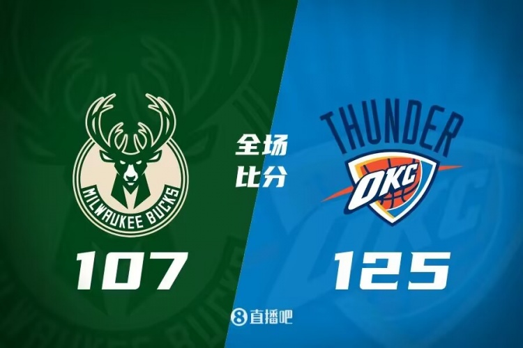 比赛开始,两队开场陷入缠斗,比分交替领先,雷霆内外开花取得微弱优势,次节雄鹿命中率骤降,雷霆持续发力打出14-2的攻击波取得两位数优势,半场战罢雷霆69-52领先。易边再战,雷霆将分差拉开到20分,此后雄鹿展开反击,米德尔顿挺身而出连得11分,雷霆连中三分稳住局势,末节雷霆持续发力打出14-4将优势扩大到20分以上,雄鹿大势已去无力回天。最终,雷霆125-107击败雄鹿,取得4连胜。