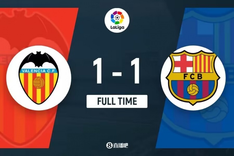 下半场补时6分钟。最终全场比赛结束,瓦伦西亚1-1巴塞罗那。