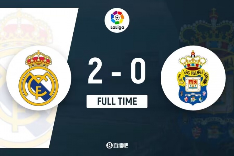 下半场伤停补时3分钟,全场比赛结束,最终皇马2-0拉斯帕尔马斯。