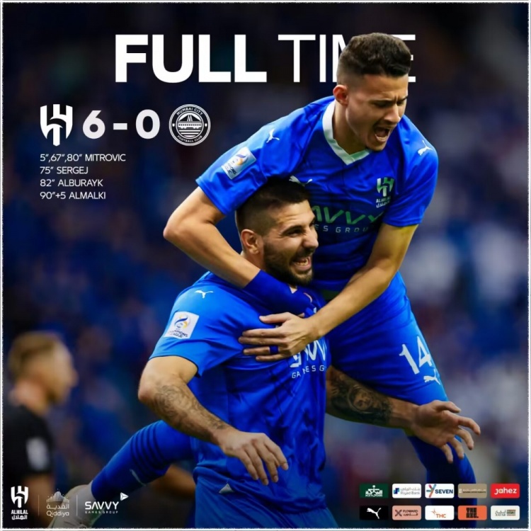 亚冠-米特洛维奇3射1传+倒钩米林破门 新月6-0孟买城取六连胜