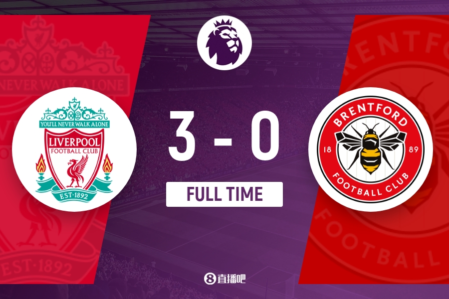 下半场伤停补时6分钟,全场比赛结束,最终利物浦3-0布伦特福德。