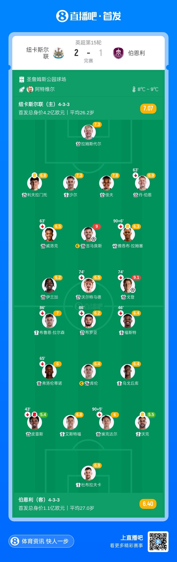4轮不败!纽卡2-1十人伯恩利 吉马良斯角球直接破门伊兰加造红牌