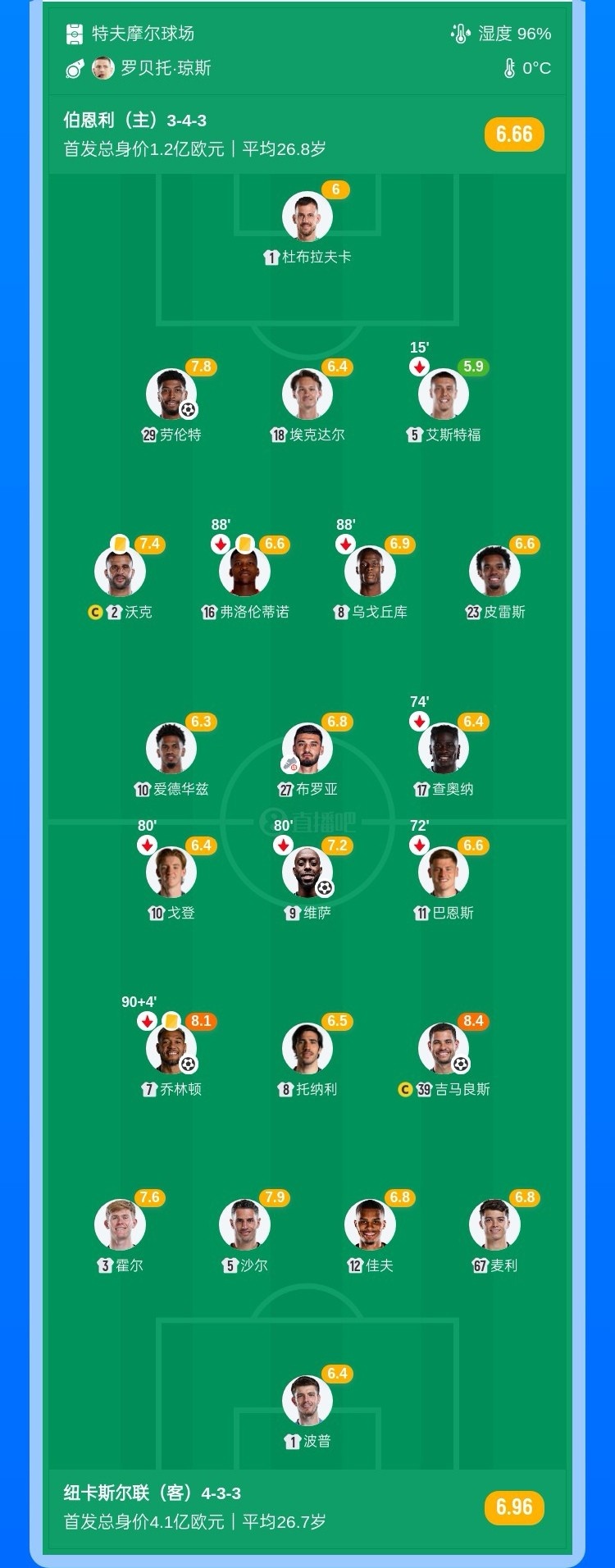 【双方首发及换人信息】
