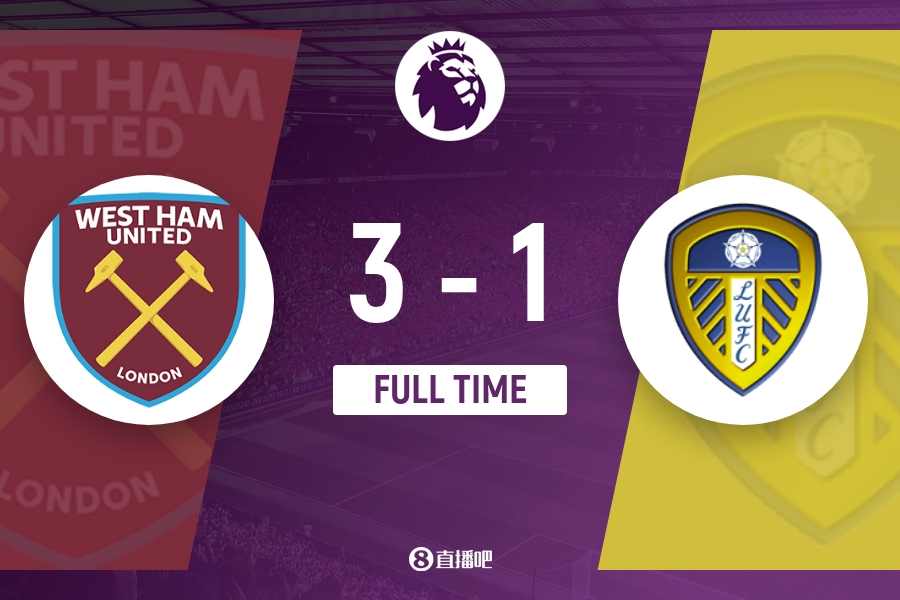 最终全场比赛结束,西汉姆3-1击败利兹联。利兹联仍居倒数第三降级区,距埃弗顿2分。
