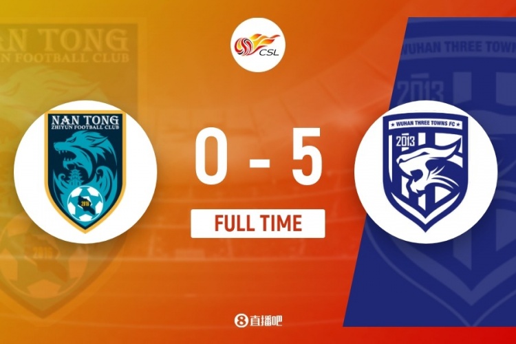 伤停补时3分钟。全场比赛结束, 武汉三镇5-0南通支云。