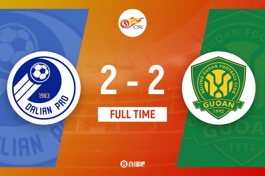 下半场伤停补时4分钟,全场比赛结束,最终大连人2-2北京国安。