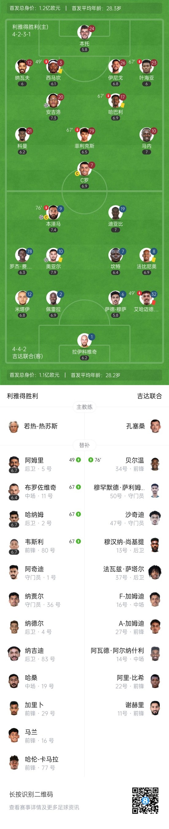 最终,利雅得胜利1-2吉达联合。