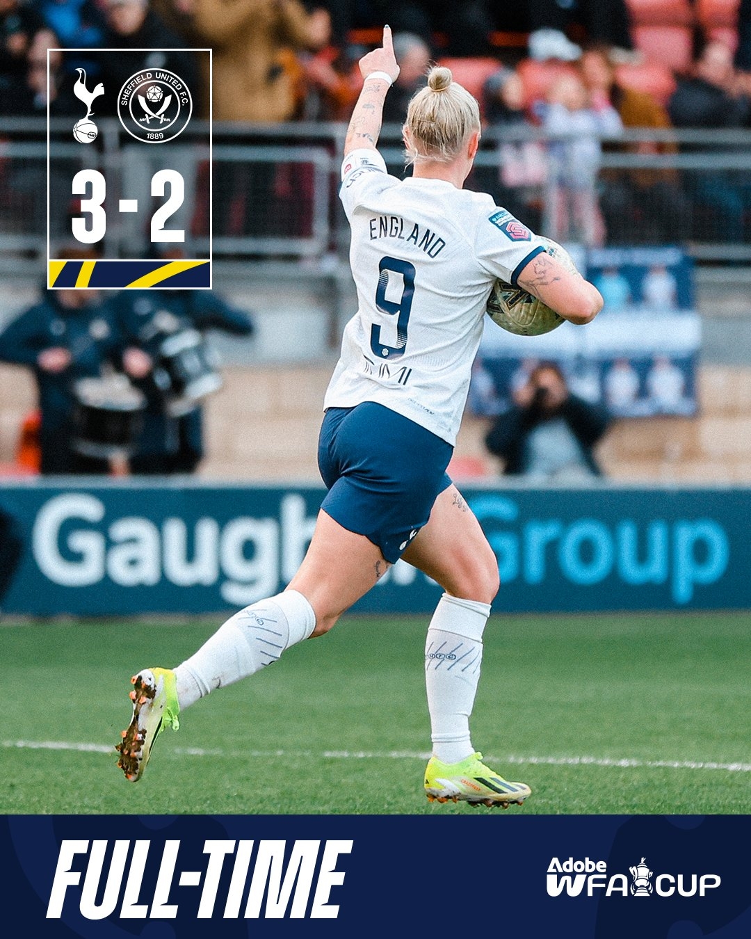 直播1月14日讯 北京时间1月14日晚上22:00,英女足总第4轮,热刺对阵谢菲联。上半场,海伍德破门,杰西卡单刀中柱。下半场,杰西补射得手,英格兰搓射破门后点射追平比分,罗塞拉读秒绝杀。全场结束,热刺3-2谢菲联。