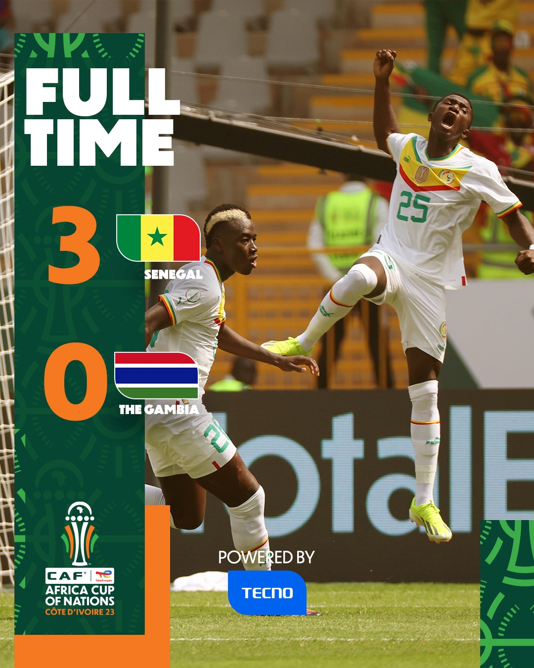1月15日讯 北京时间1月15日22点,非洲杯小组赛C组首轮塞内加尔对阵冈比亚。上半场,马内助攻盖耶先拔头筹,补时阶段亚当斯染红。下半场,卡马拉打进两球。全场比赛结束,塞内加尔3-0冈比亚,收获开门红。