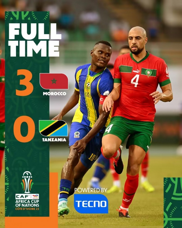 1月18日讯 北京时间1月18日凌晨1点整,2023非洲杯F组首轮展开角逐,摩洛哥对阵坦桑尼亚。上半场赛斯补射打破僵局,下半场诺瓦图斯染红,奥纳西和恩内斯里扩大比分。最终摩洛哥3-0完胜坦桑尼亚,取得本届非洲杯开门红。F组积分榜方面,摩洛哥积3分暂居榜首,坦桑尼亚积0分垫底。