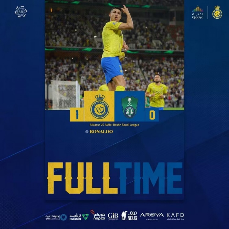 沙特联-利雅得胜利1-0吉达国民距榜首9分 C罗点射&23球领跑射手榜