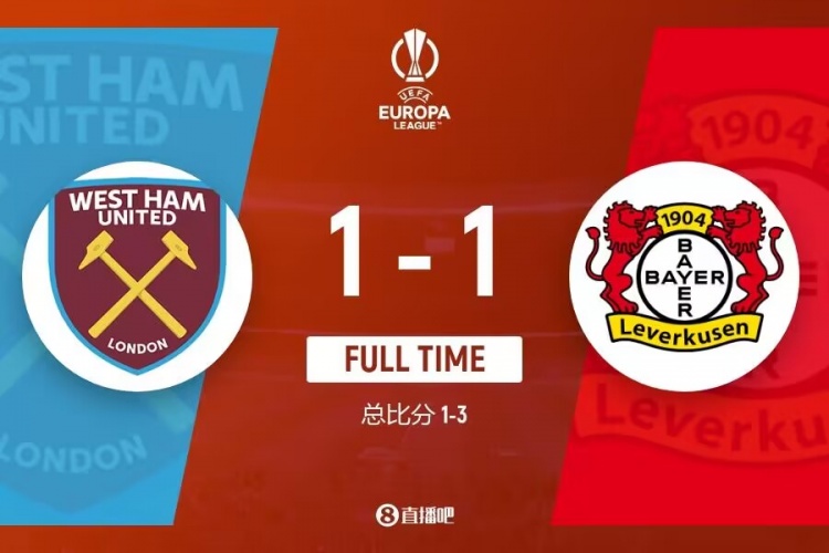 绝平!勒沃库森1-1总比分3-1西汉姆进半决赛 各赛事44场不败