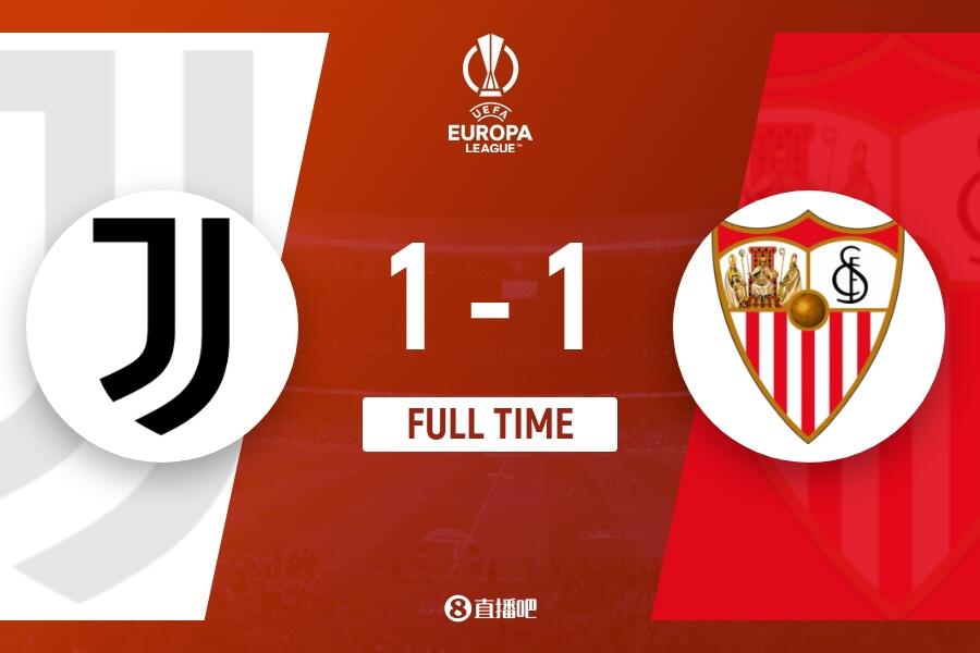 下半场伤停补时6分钟,全场结束,最终尤文图斯1-1塞维利亚。