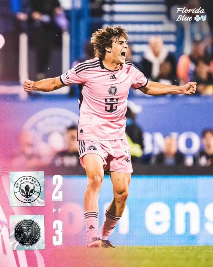 让2追3!迈阿密3-2蒙特利尔5连胜稳居东区榜首 罗哈斯传射+任意球