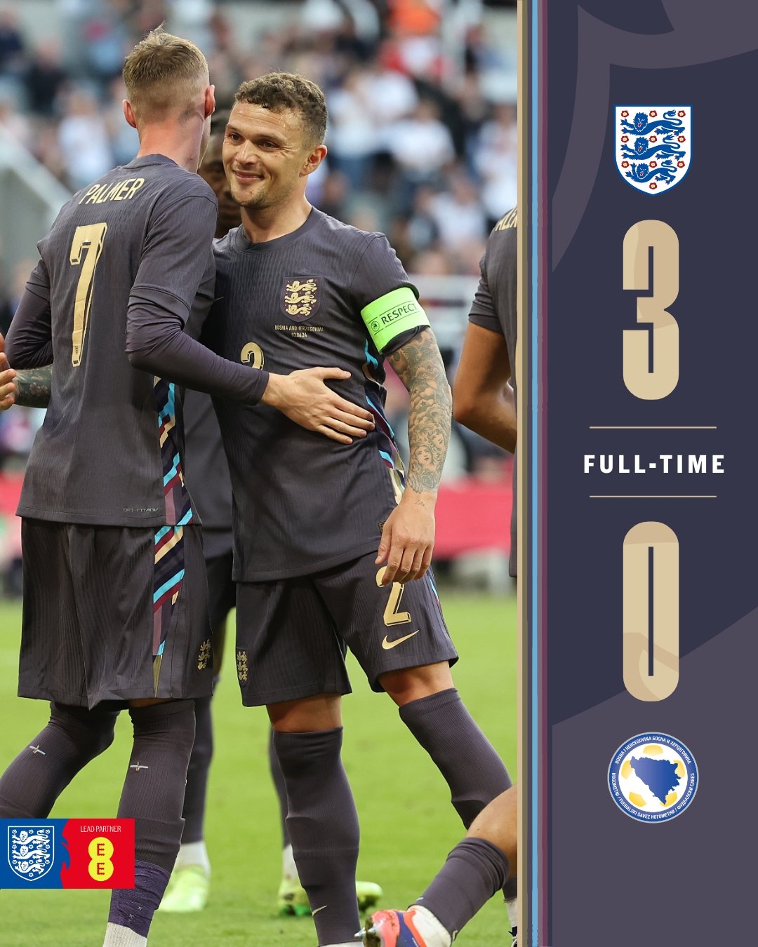 帕尔默点射处子球阿诺德凌空斩凯恩建功 英格兰3-0波黑