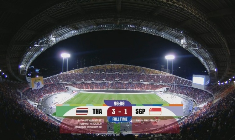 全场比赛结束,泰国3-1新加坡。