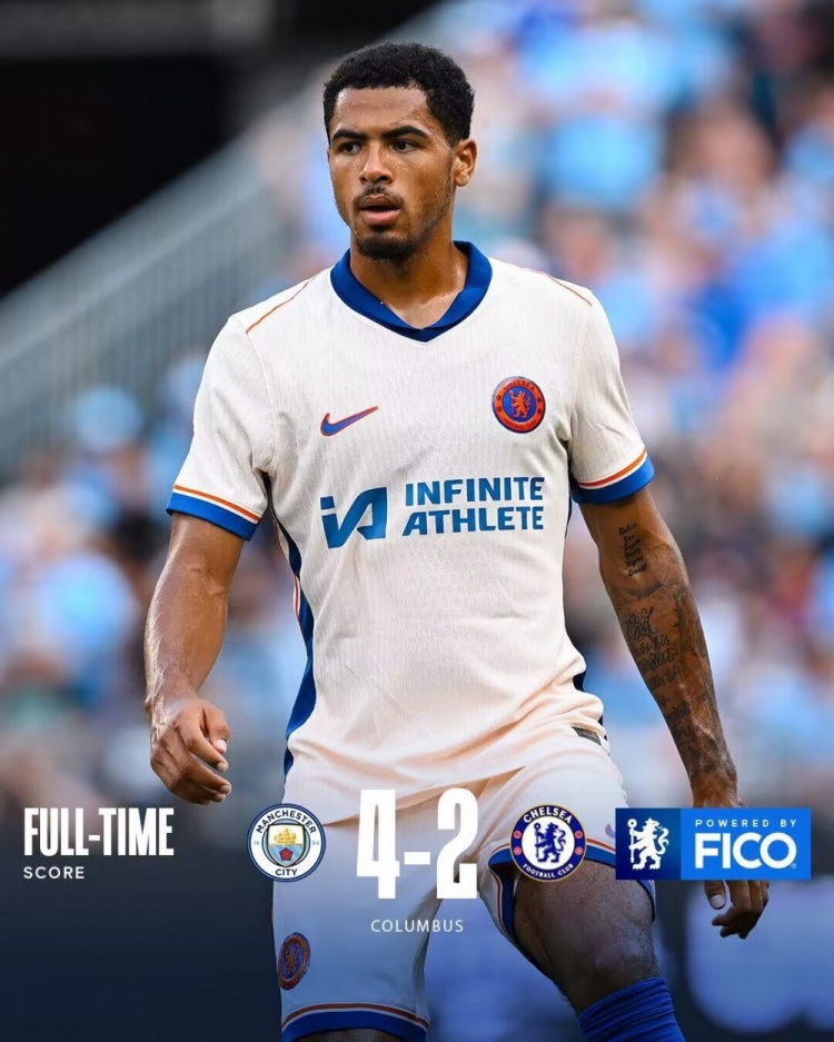 8月4日讯 北京时间8月4日凌晨5:30,友谊赛切尔西对阵曼城。上半场,开场不久科尔维尔送点,哈兰德主罚命中,近过了1分钟后,凯塞多传球失误,哈兰德抓住机会再入一球完成梅开二度,尾声阶段,恩佐空门机会打偏。半场战罢,切尔西暂0-2曼城;下半场,鲍勃破门扩大比分优势,哈兰德进球完成帽子戏法,斯特林、马杜埃凯替补登场扳回一球。全场比赛结束,切尔西2-4曼城!