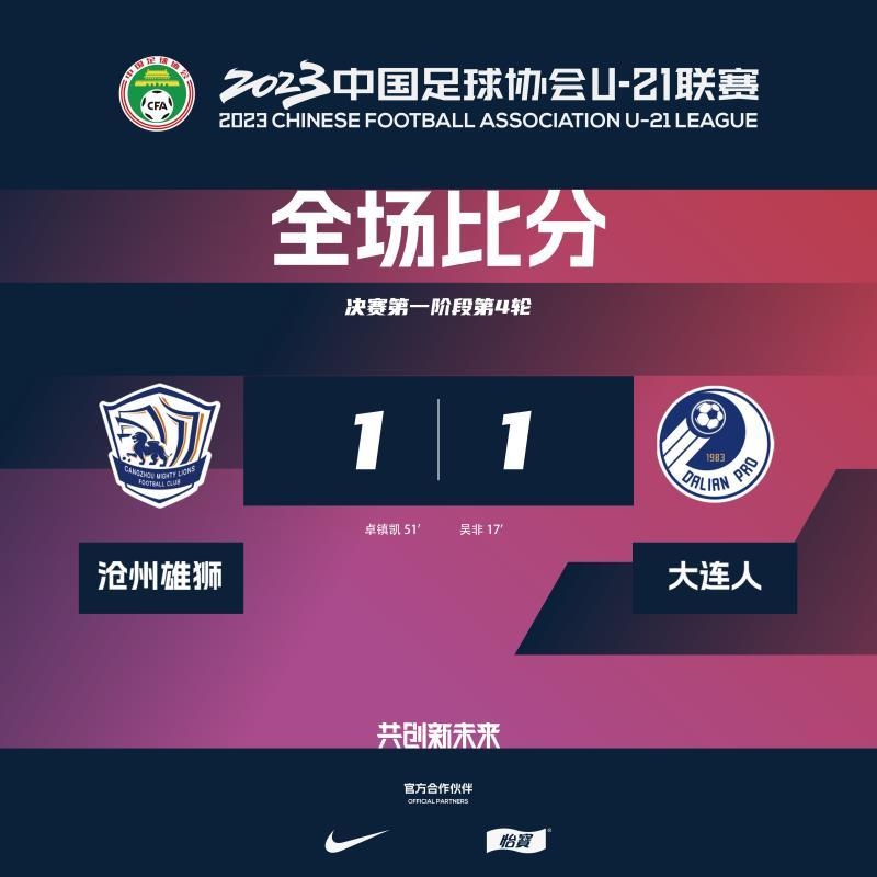 中超U21联赛总决赛第4轮-大连人U21以1-1战平沧州雄狮U21