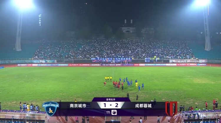 全场比赛结束,成都蓉城2-1南京城市。