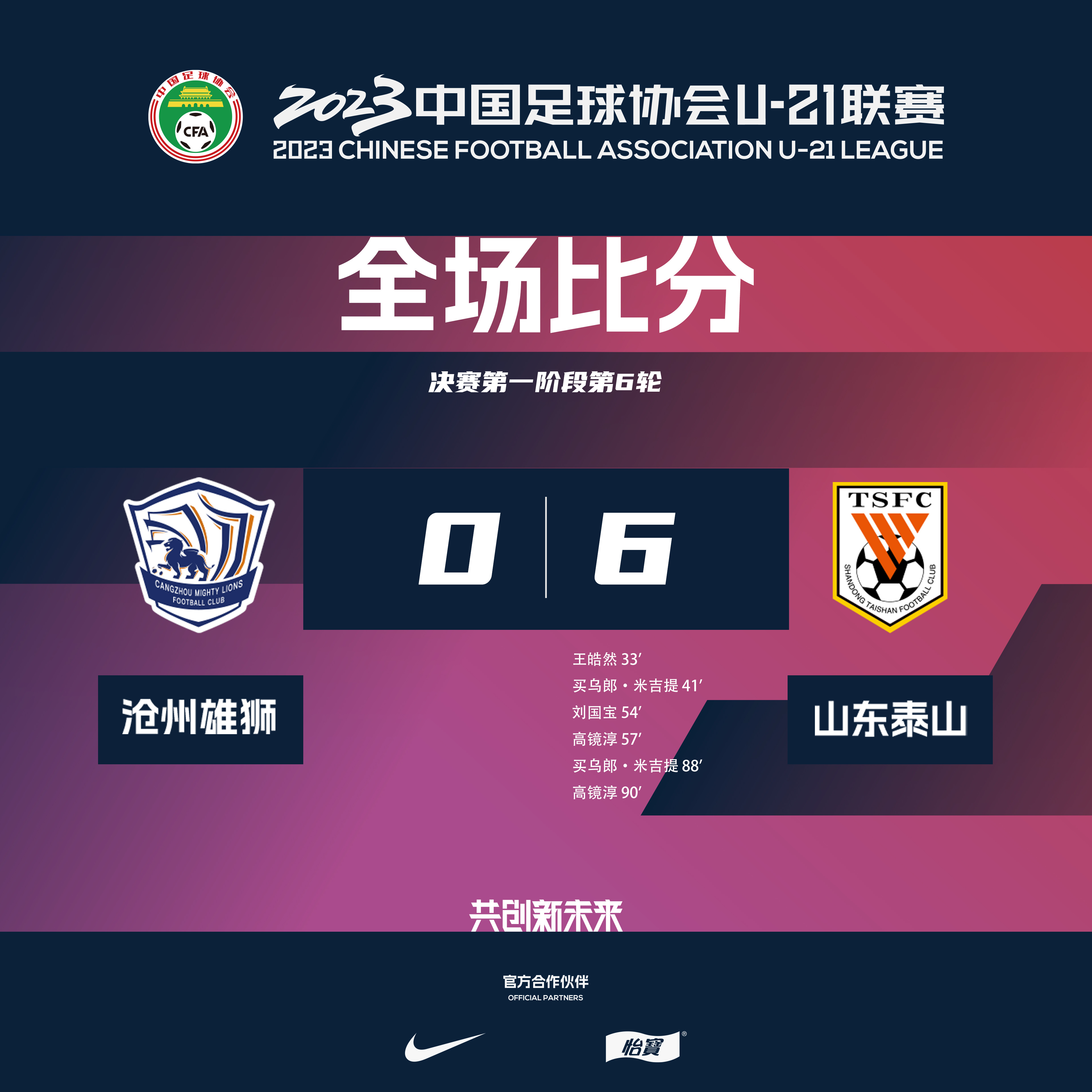 中超U21联赛总决赛第6轮-山东泰山6-0沧州雄狮,刘国宝赛季第13球