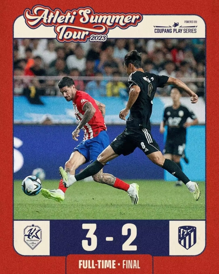 7月27日讯 北京时间7月27日晚19点整,2023年国际足球友谊赛在首尔世界杯体育场展开角逐,马德里竞技对阵K联赛明星队。上半场勒马尔补射首开纪录,李昇祐失单刀,莫拉塔三次进球被吹越位,下半场安东头球扳平,卡洛斯-马丁破门,亚历山大点射再度扳平,李顺民读秒绝杀,最终马德里竞技2-3不敌K联赛明星队。