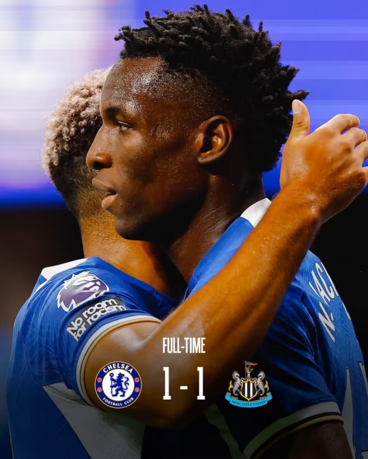 全场比赛结束,切尔西1-1纽卡。
