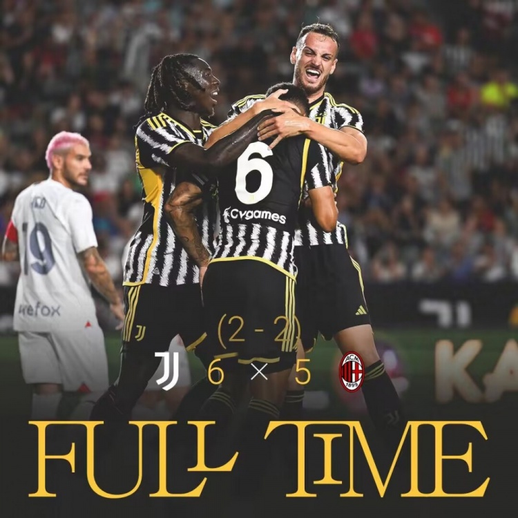 最终点球大战尤文4-3战胜米兰,总比分尤文6-5米兰。