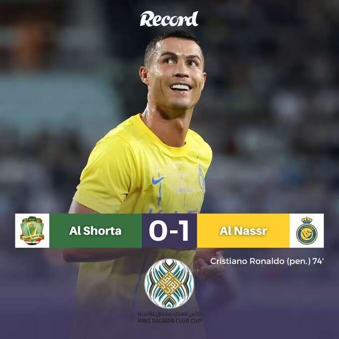 C罗主罚点球命中,利雅得胜利1-0巴格达警察。↓