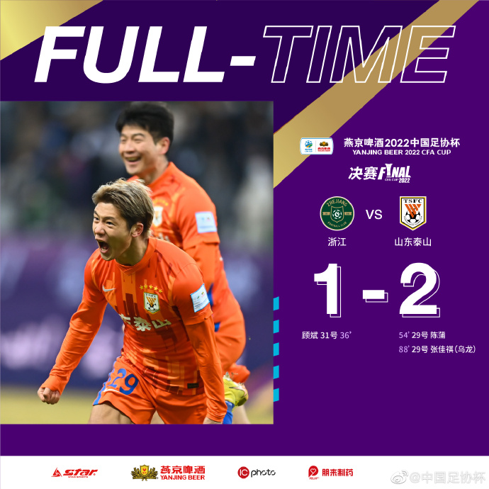 足协杯-山东泰山绝杀2-1逆转浙江夺冠 连续三年夺足协杯冠军