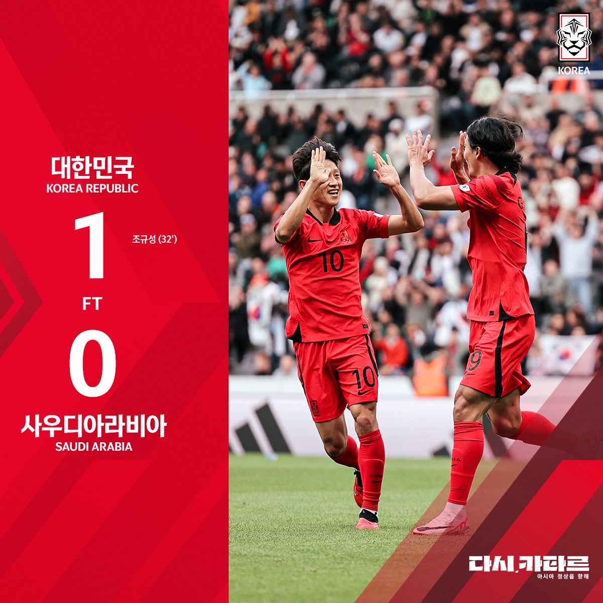 全场比赛结束,沙特0-1韩国。