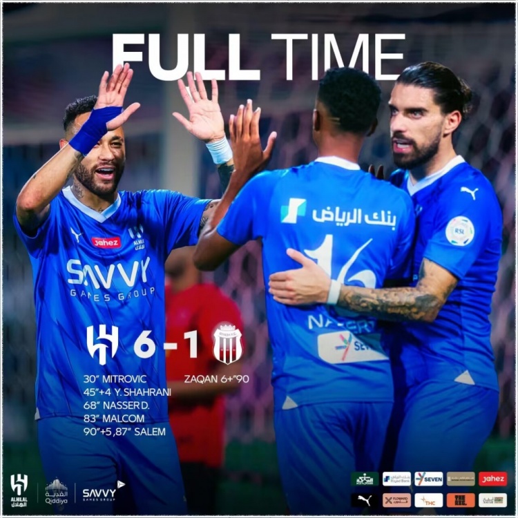 9月16日讯 北京时间9月16日凌晨2点整,2023-24赛季沙特联第6轮展开角逐,利雅得新月坐镇主场迎战利雅得体育。上半场米特洛维奇点射首开纪录,沙赫拉尼扩大比分,下半场内马尔替补迎首秀,策动进球后送助攻和造点,马尔科姆传射,萨勒姆-多萨里独中两元,纳塞尔-多萨里破门。最终利雅得新月主场6-1大胜利雅得体育,新月取得联赛4连胜,开局6轮保持不败。