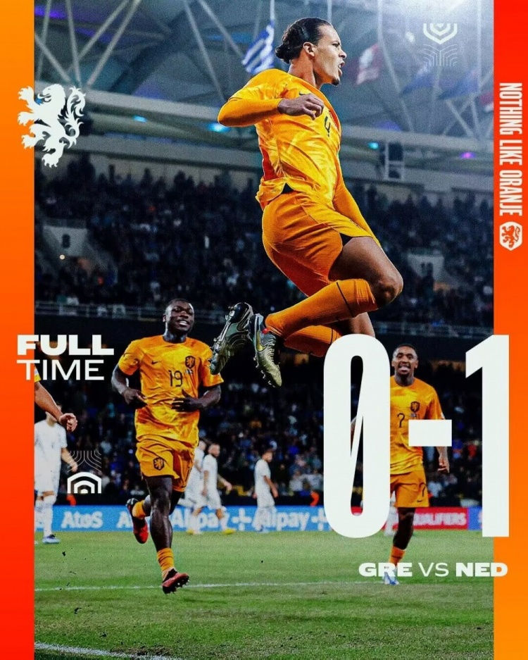 10月17日讯北京时间10月17日凌晨2:45欧洲杯预选赛第8轮,荷兰客场对阵希腊。上半场,范迪克造点,韦霍斯特主罚点球被扑,双方互交白卷;下半场,荷兰队连续换人加强进攻,补时阶段,邓弗里斯造点,范迪克主罚命中。全场比赛结束,荷兰1-0希腊,荷兰最后2轮拿3分即可出线!