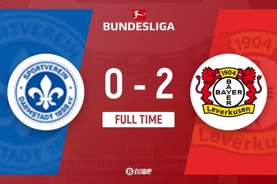 全场比赛结束,勒沃库森2-0击败达姆施塔特,赛季继续不败。