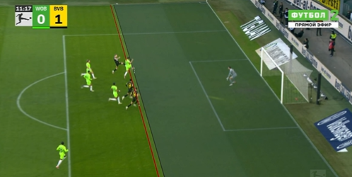 第45+7分钟,沃尔夫斯堡一次半单刀机会被门将扑到后击中立足弹出,这球边裁也示意越位在先。↓