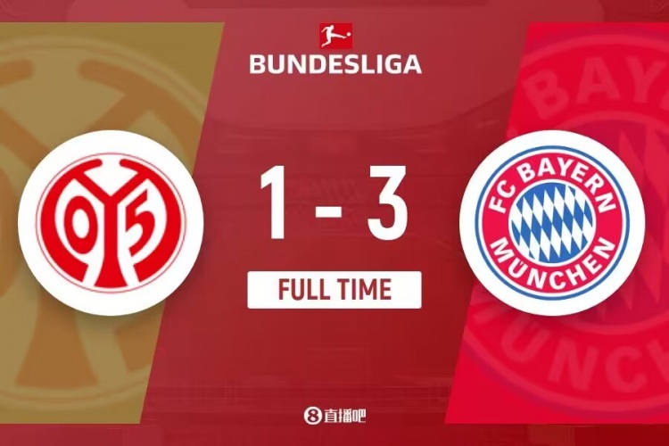 下半场补时5分钟,美因茨1-3拜仁。