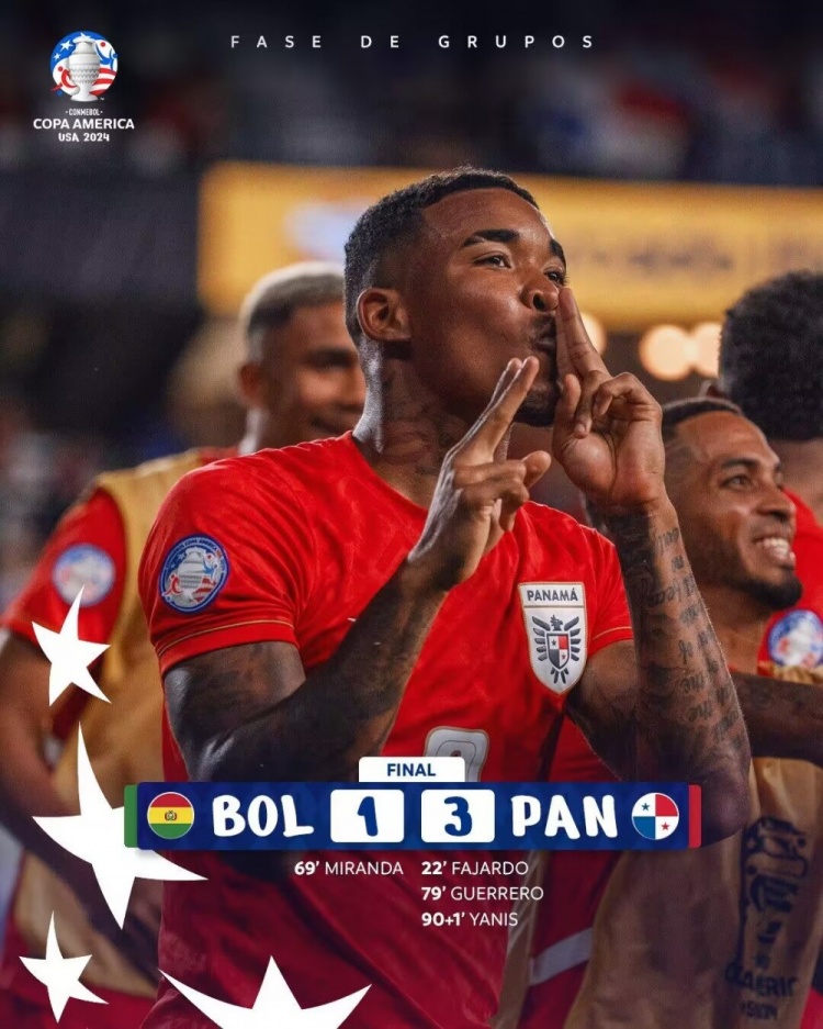 7月2日讯 北京时间9:00,美洲杯C组玻利维亚vs巴拿马。上半场,法贾尔多停球转身抽射破门!连场进球!下半场,瓦卡直塞安德森扳平!随后格雷罗冲顶破门帮助巴拿马再次领先!亚尼斯替补登场秒进球!最终,巴拿马3-1战胜玻利维亚,取得2连胜!玻利维亚三战全负0分垫底。