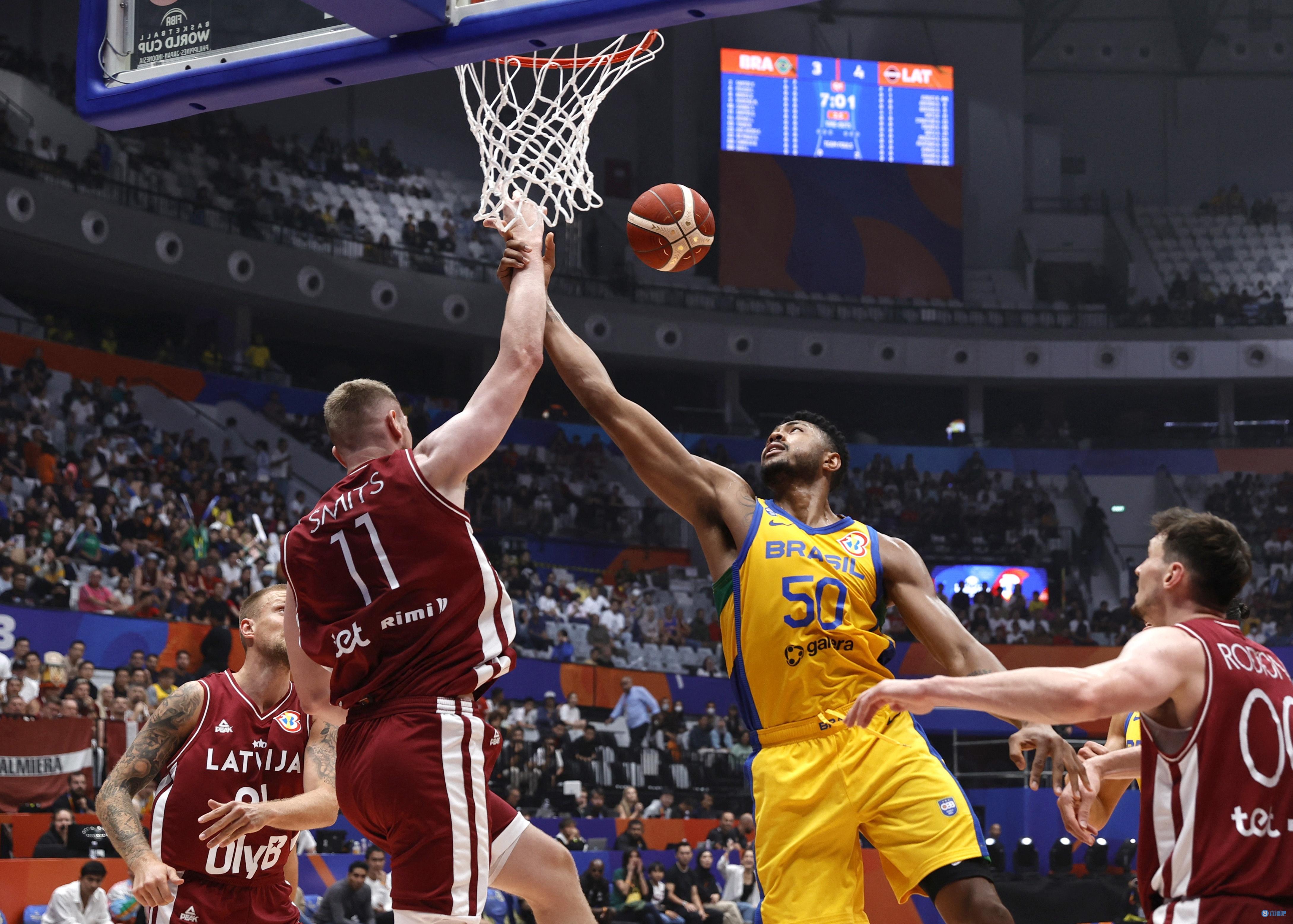 首节开局拉脱维亚打出自己擅长的攻防转换拿到9-2的领先,被动的巴西在暂停归来后迅速调整回来,卡波克洛最后的上篮一度为巴西实现反超,不过拉脱维亚也在最后时刻依靠库鲁茨几近压哨的三分夺回领先;次节开局拉脱维亚再接再厉送出10-2的攻势迅速拉开10分优势;不过顽强的巴西再一次上演极限超车最后时刻扳平比分;不过这一节剧本和首节一样,拉脱维亚最后时刻凭借贝尔坦斯的三分再一次取得3分领先结束上半场。休息归来拉脱维亚开局一度是落后的,但他们随后突然爆发轰出32-14的攻势直接拉开接近20分的领先;这一次取得领先后拉脱维亚没有再犯错,末节一波7-2的攻势将分差扩大至26分早早锁定胜局。最终,拉脱维亚轻松击败巴西杀入8强。