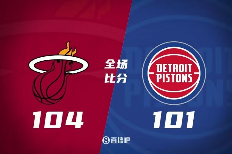 一开场,热火率先发力打出13-4的开局,活塞不断冲击篮筐拿分打出9-3完成反超,次节热火大举进攻,邓罗高效输出连续拿分帮助球队占据场上主动,活塞里突外投顽强咬住,半场战罢热火60-50领先活塞10分。下半场,热火命中率骤降,活塞奋力反击打出16-2迅速迫近比分,末节双方争夺陷入白热化,关键时刻邓罗和康宁汉姆对飙三分,活塞顽强扳平比分,阿德巴约三分绝杀,最终,热火104-101险胜活塞。