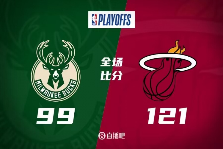 比赛开局,雄鹿进攻手感不佳,热火则稳扎稳打,巴特勒内外开花单节砍下17分,帮助球队建立领先优势。次节两队外线手感打开,形成对飙,热火上半场三分线外19中12,半场结束以66-53领先。易边再战,两队陷入拉锯战,交替取分,分差一直在15分上下浮动,比赛很快进入第四节。末节回来,雄鹿进攻端突然断电,接连投失,热火这边连续进攻禁区,分差很快被继续拉大到20分以上,比赛逐渐失去悬念,最终热火主场121-99轻取雄鹿,大比分2-1领先。