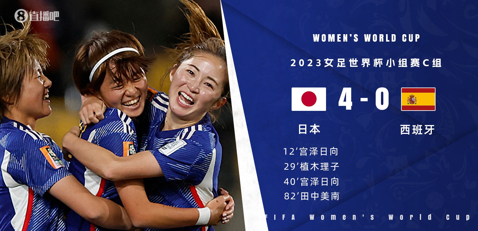 女足世界杯-日本4-0送西班牙最惨失利 日本头名出线将战挪威 西班牙战瑞士