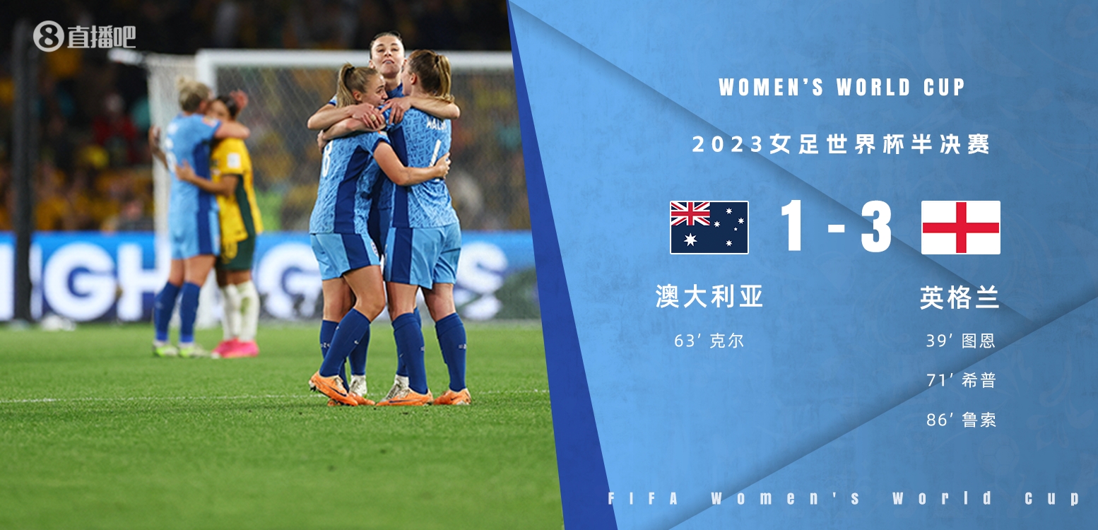 女足世界杯-英格兰3-1淘汰东道主澳大利亚,与西班牙会师决赛