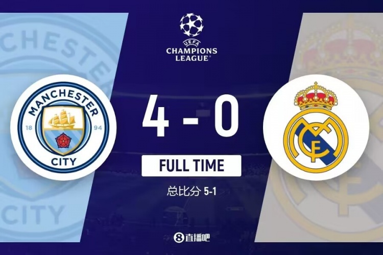 欧冠-复仇!曼城4-0皇马总比分5-1晋级决赛 B席双响裤袜屡献神扑