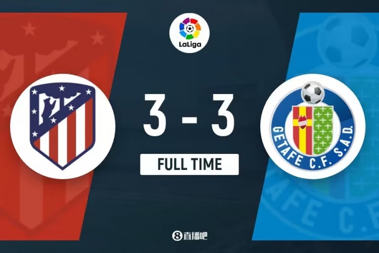 下半场补时9分钟。最终全场比赛结束,马竞3-3赫塔费。