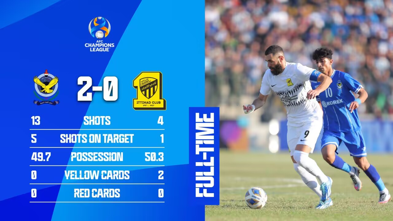 亚冠-本泽马先发打满全场 吉达联合0-2巴格达空军仍居小组第一