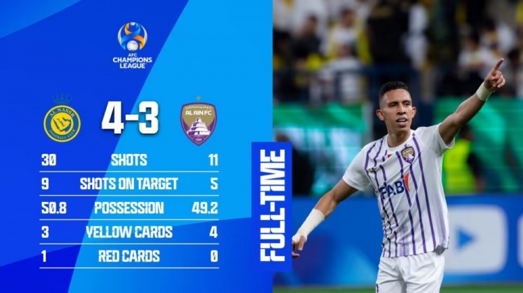 第28分钟,阿尔艾因的反击机会,罗梅罗中场直塞,拉希米单刀球推射破门,裁判最初吹罚越位。随后通过VAR,裁判改判进球有效,总比分利雅得胜利0-2阿尔艾因!↓